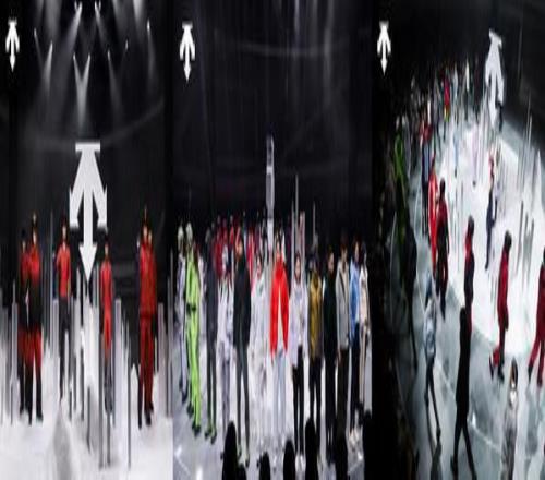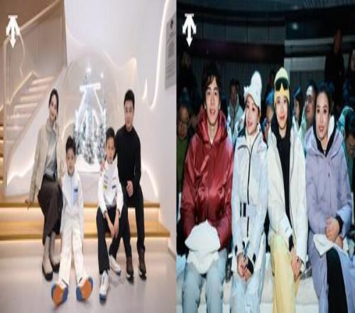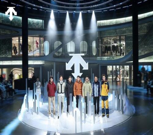 大秀走秀环节接续上演,以科技为翼勾勒全景运动图景,四大核心装备系列依次亮相。从彰显专业巅峰的国家队系列、贴合滑雪运动核心需求并融入匠心的单双板场上和场下装备,到融合非遗文化的香云纱系列、凝练匠心与机能美学的 ALLTERRAIN 系列,再到与艺术家Daniel Arsham联手打造的联名系列,全面覆盖专业运动与都市生活多元场景。期间,迪桑特签约运动员周苡竹领衔一众儿童模特身着儿童滑雪系列惊喜登场,萌趣中尽显冰雪运动的新生代活力。他们牵引迪桑特品牌代言人步入秀道,将"未来力量"与"专业领航者"在同一时刻连接,共同完成大秀高潮的递进。当三位代言人来到舞台中央,全场灯光随之开启最终章节的点亮,30套走秀造型悉数回归,构成整场大秀最具视觉张力的全景画面。它们集中展现各系列在性能突破、结构创新与机能美学上的核心优势,完整勾勒出迪桑特凭借多元产品实力,向"问顶未来"稳步迈进的进阶之路。