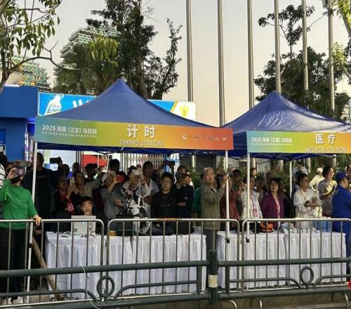 从贝壳式奖牌设计,到沿途多处的“文旅加油站”,都颇具特色与记忆点。非遗展示、热带风情歌舞、特色美食品尝、文旅IP互动……这些沉浸式场景,多维度展现了三亚丰富而深厚的旅游文化资源。