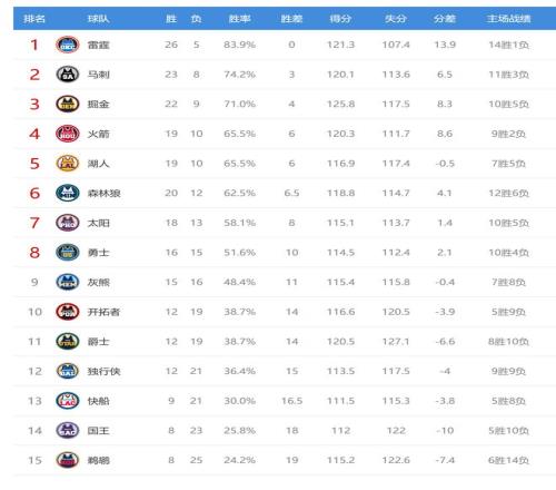 国王赢球后8胜23负,排名从西部第15升到14,独行侠输球后12胜21负,排名从西部第11掉到12。